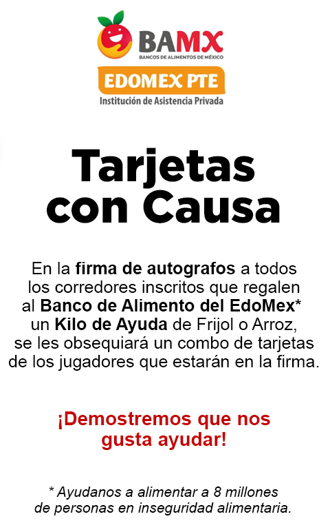 - Este evento no cuenta con premiación, ya que lo recaudado será para apoyar al Banco de Alimentos del Estado de México.